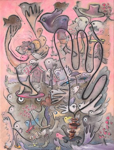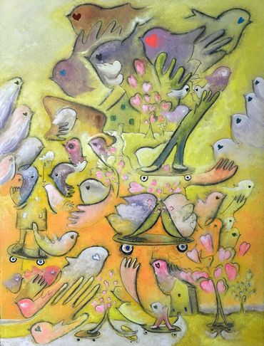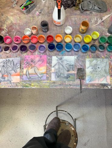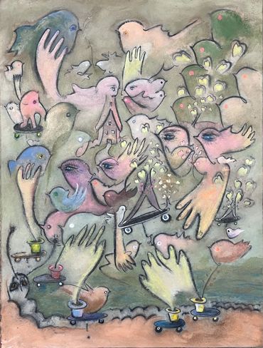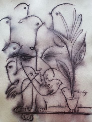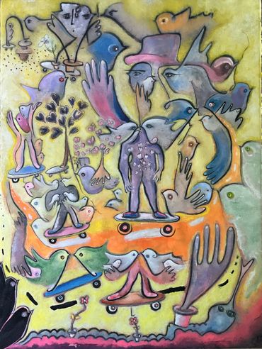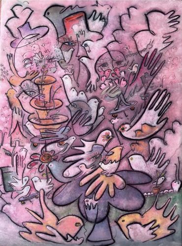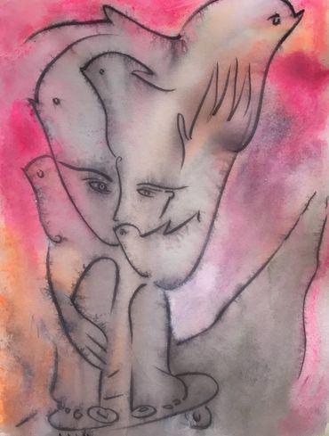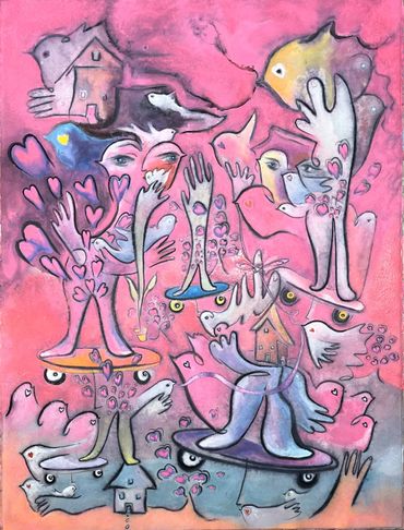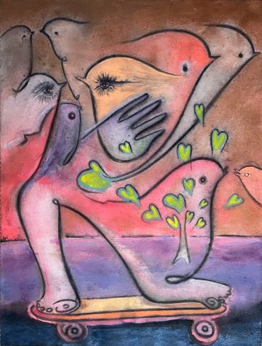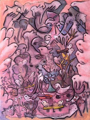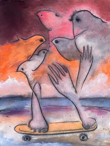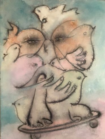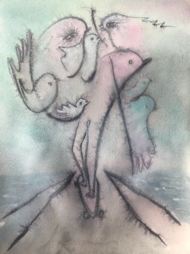 Works shown below are a collection of mixed media on paper, and canvas, that vary from